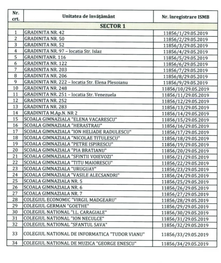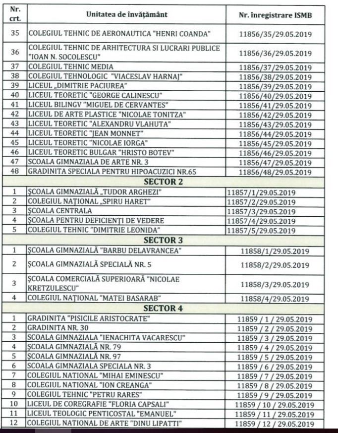 Lista nominală a școlilor aflate în această situație a fost afișată public pe site-ul Inspectoratului Școlar al Municipiului București, www.ismb.edu.ro.