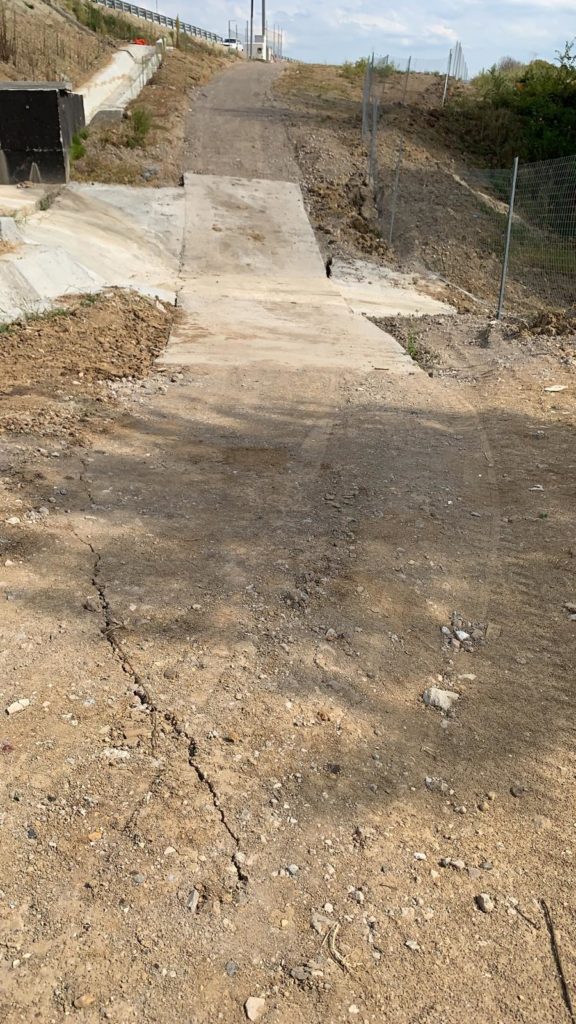 Mai exact, la km 57 este fisură în asfalt în lungime aproximativ 15 m . Afectează banda de urgență și banda 1, are deja 1 cm pe crapatură și continuă să se desfacă. Conform fotografiilor, aceeași fisură, de data asta în drumul tehnologic aflat la baza terasamentului, o porțiune din autostradă pleacă la vale.