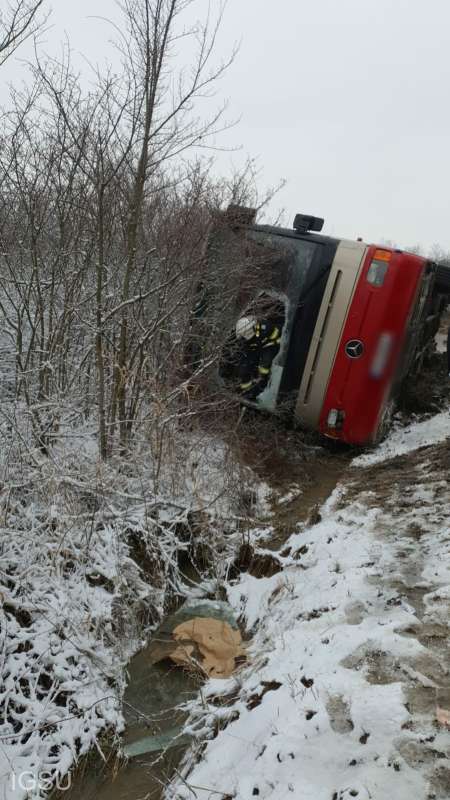 Conform Centrului INFOTRAFIC din Inspectoratul General al Poliţiei Române, autobuzul a derapat şi s-a răsturnat în şanţ, carosabilul în zonă fiind la negru, umed, iar pe anumite porţiuni sunt condiţii de formare a poleiului.