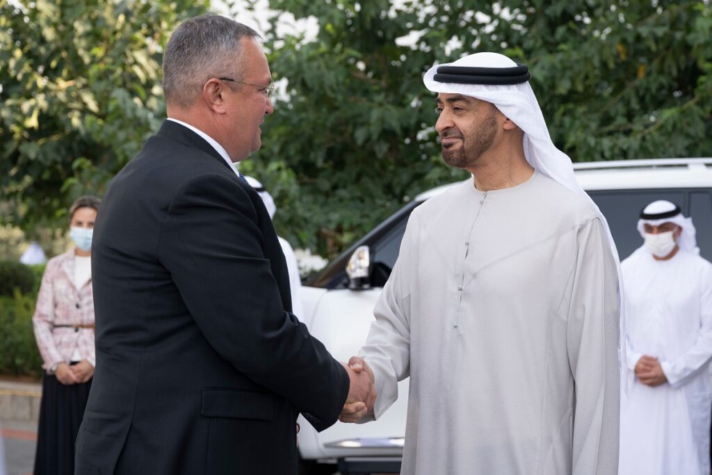 Potrivit unui comunicat transmis de Guvern, prim-ministrul Nicolae Ciucă a efectuat, pe 20 şi 21 iunie, o vizită de lucru în Emiratele Arabe Unite, ocazie cu care a avut o întrevedere, la Abu Dhabi, cu şeicul Mohamed bin Zayed Al Nahyan, preşedintele EAU, şi cu şeicul Mohammed bin Rashid Al Maktoum, vicepreşedintele şi prim-ministrul EAU.