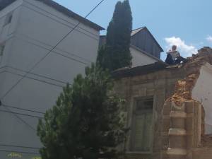 Demolarea unei clădiri istorice din Fălticeni, oprită temporar după ce un profesor s-a urcat pe zidurile acesteia