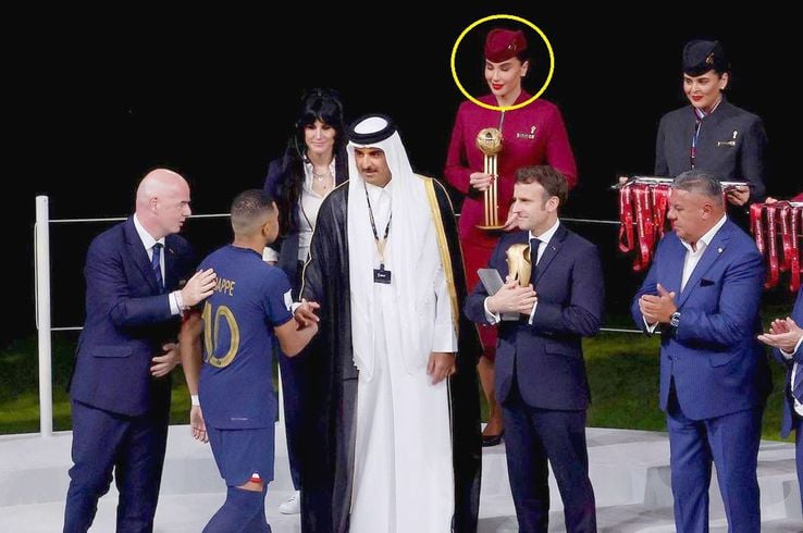 Adriana lucrează în Qatar ca stewardesă, iar pe podium a stat chiar în spatele președintelui Franței Emmanuel Macron.