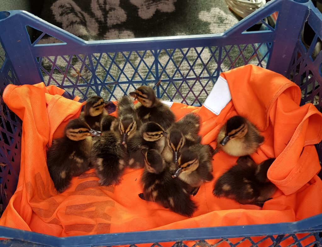 11 pui de rață sălbatică au fost salvați de drumarii din Braşov