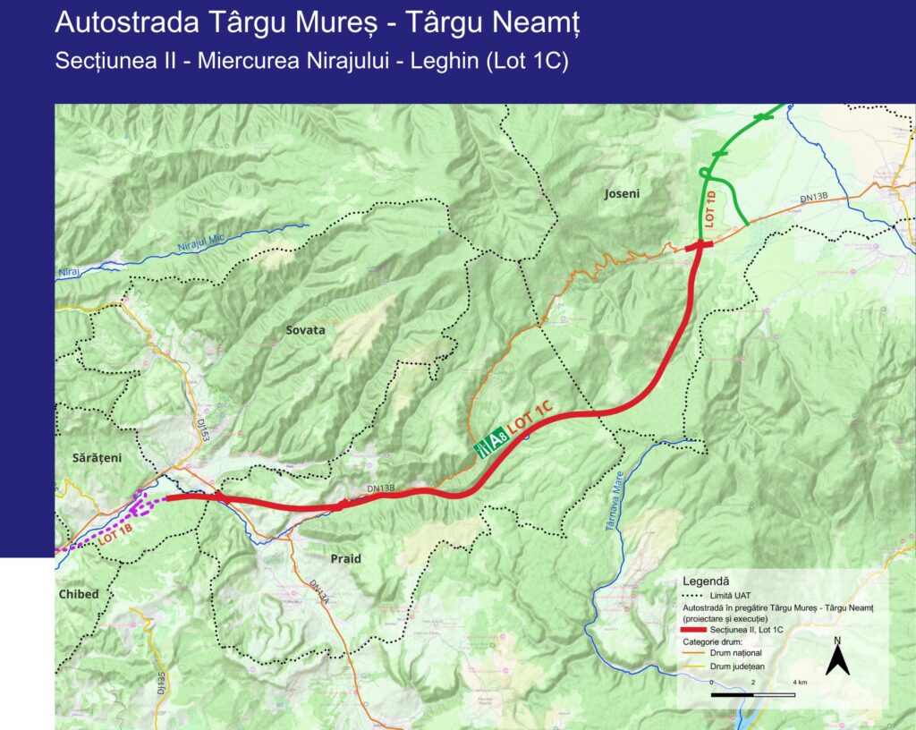 Lotul 1 C Sărăţeni-Joseni, care se desfăşoară în judeţele Mureş şi Harghita, are o lungime de 32,4 kilometri şi include: 39 de poduri şi pasaje; 3 tuneluri unidirecţionale; 4 polate şi 2 pasaje pentru permeabilitatea animalelor (ecoducte).