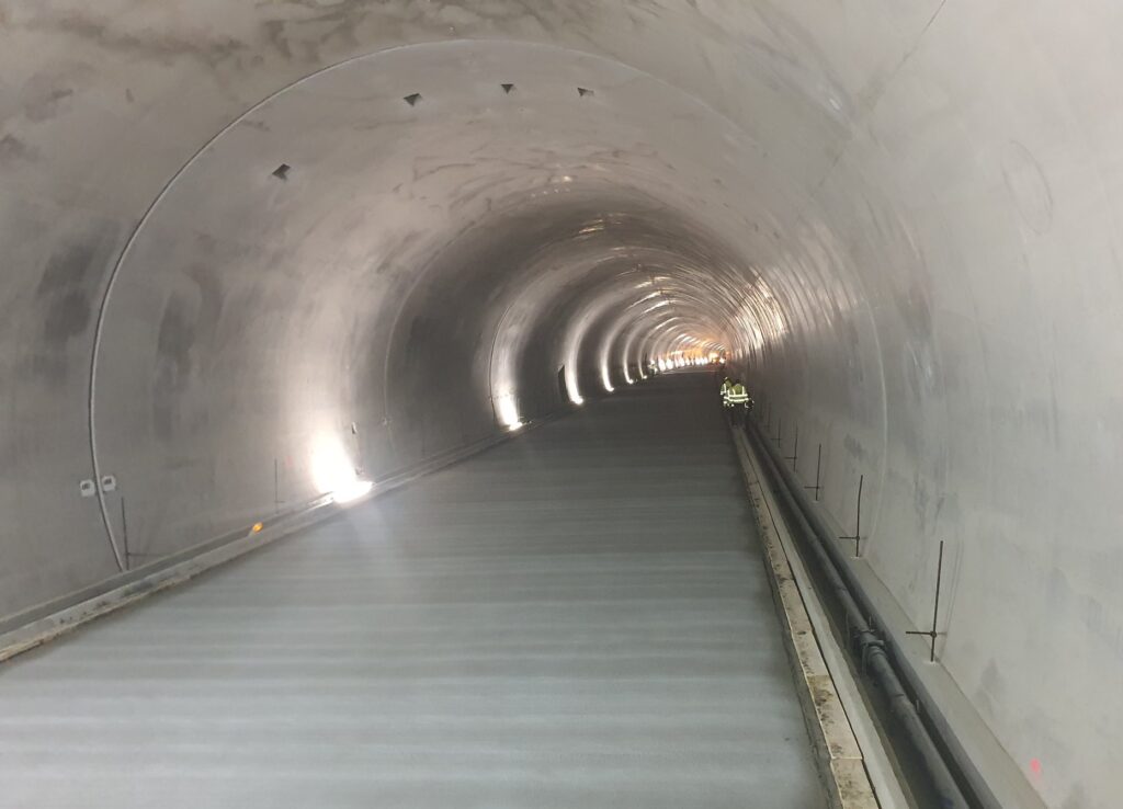 Totodată, au fost finalizate cele trei tuneluri de urgență dintre cele două fire, precum și turnarea betonului rutier în interiorul tunelurilor. Potrivit lui Scrioșteanu, antreprenorul „are o mobilizare bună în șantier și păstrează avansul față de termenul contractat”, estimând că circulația va fi deschisă peste aproximativ șase luni.