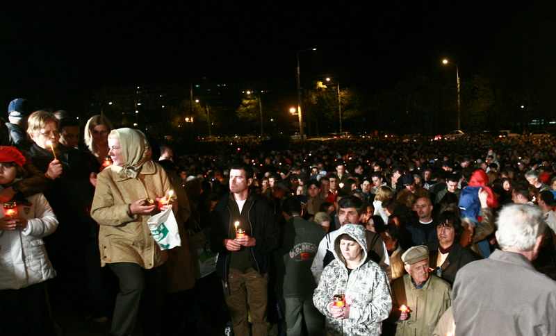 Credinciosi participa la slujba de Inviere, cu ocazia Pastelui ortodox, la Biserica Sf. Vineri din Bucuresti, duminica, 19 aprilie 2009. Andreea Alexandru